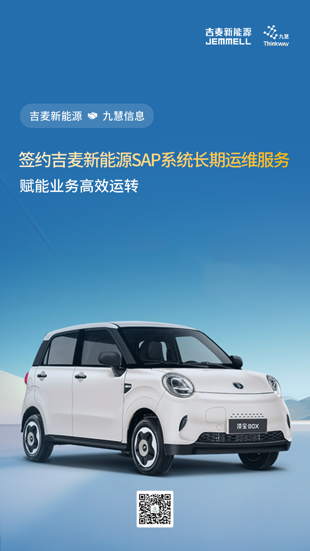 近日,江苏吉麦新能源车业有限公司(简称:吉麦新能源、凌宝汽车)、上海九慧信息科技有限公司(简称:九慧信息)双方签约SAP系统长期运维服务。本次合作九慧信息将提供全生命周期系统运维服务,覆盖新能源汽车研···